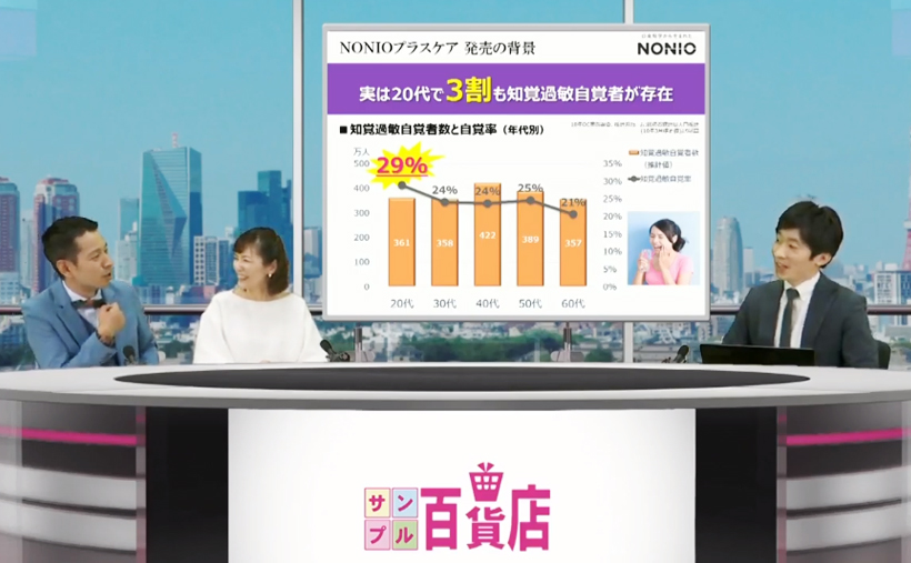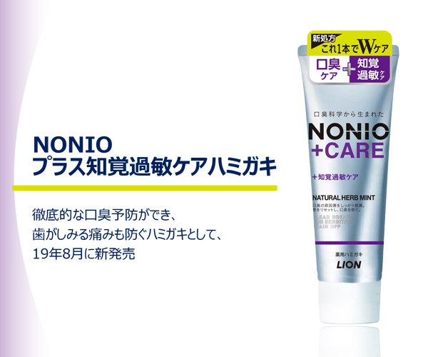 2017年、口臭予防機能を特徴に誕生したブランド「NONIO」から、口臭予防しながら知覚過敏もケアできる、両方を訴求する「NONIOプラス知覚過敏ケアハミガキ」をご紹介。知覚過敏用にありがちな薬っぽい味を抑え「知覚過敏用ハミガキなのに美味しい」を実現しました。