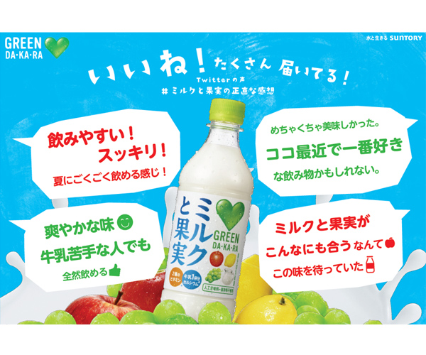 心とカラダにやさしいブランド「GREEN DA・KA・RA」から、乳のやさしさと爽やかな果実感を生かし、すっきり飲みやすい素材由来の自然な味わいを再現した「ミルクと果実」。子供が喜ぶものを与えたい、けどなるべく体にいいものを選びたいニーズに応えます。