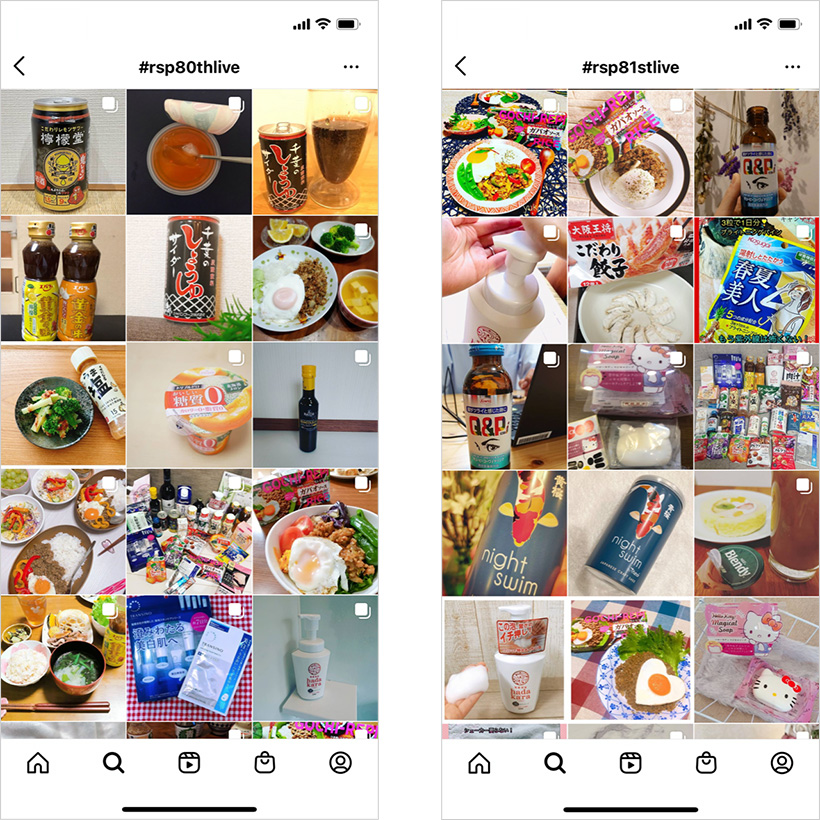 #rsp80thlive、#rsp81stliveのハッシュタグでInstagramに投稿された商品体験(一部)