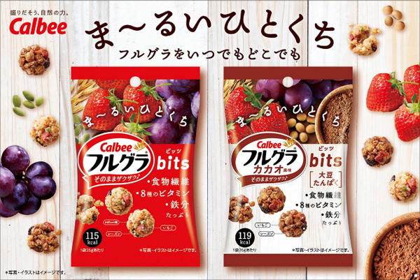 日本で1番選ばれている(購入されている)シリアルブランド「カルビー フルグラ」。外でも食べたいニーズに応えた「フルグラビッツ」は、フルグラのザクザク食感、おいしさや栄養はそのままに、ひとくちサイズに丸め、持ち運びができるので、いつでもどこでも食べられます。子どものおやつにもぴったりです。