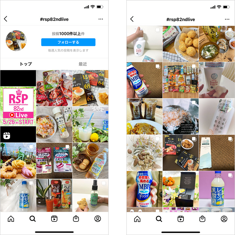 視聴後InstagramやTwitterに「#rsp82ndlive」などのハッシュタグで、商品の感想を多数投稿いただいております。また、実際に商品を試した感想やお薦めポイントをブログに投稿した商品体験レポートも続々集まっており、リアルサンプリングプロモーションライブ(RSP Live)ページにて、各SNSの投稿や商品体験レポートをご覧いただけます。