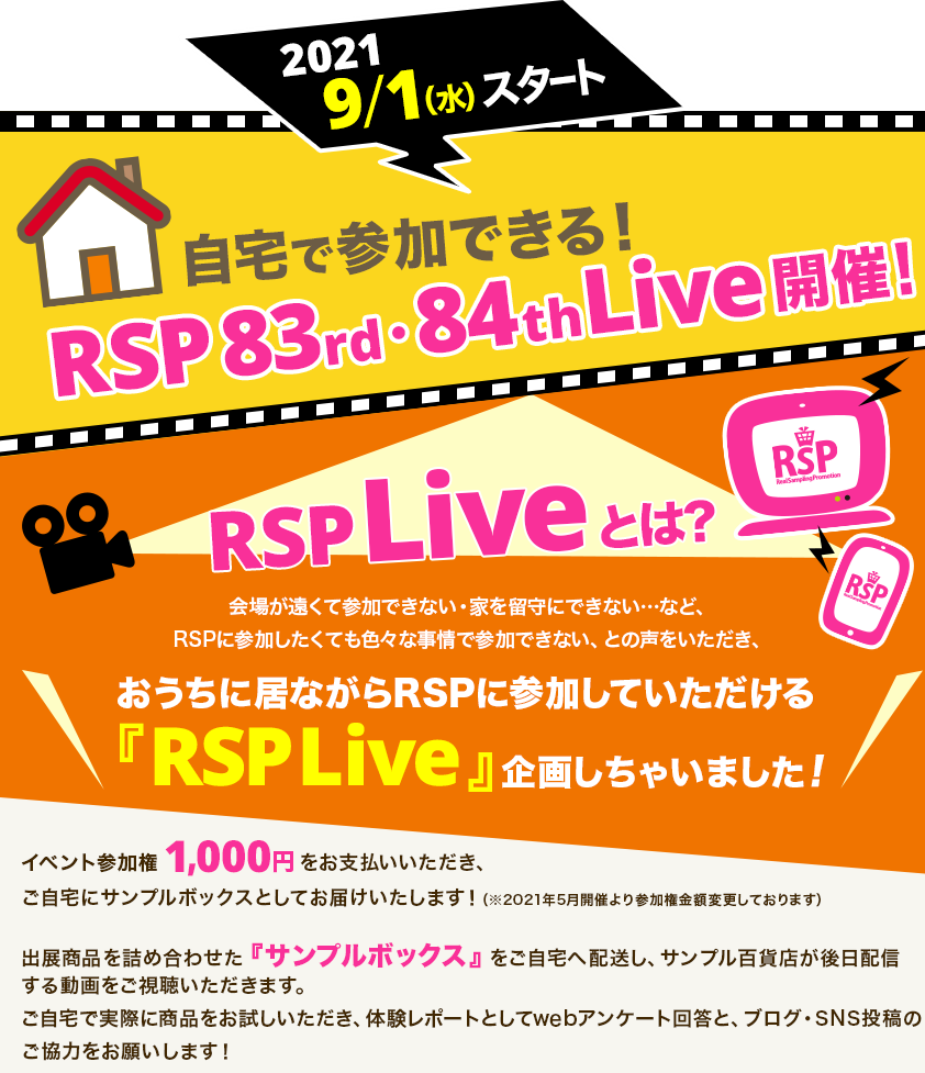 次回RSP 83rd・84th Liveは9月1日(水)に開催を予定しており、6月10日(木)まで参加者を募集しております。