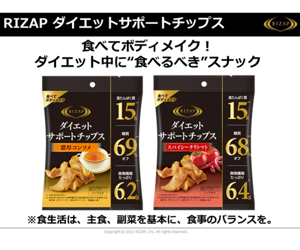 ダイエットには、「糖質のコントロール」と筋肉のもととなる「たんぱく質の摂取」が重要。「結果にコミットする」RIZAPから、スナック菓子が大好きだけど体型や健康が気になる「なまけダイエッター」にチップスが登場。カリッと食感と濃厚な味付けで、食べてボディメイクをサポートします。