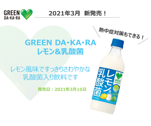 「甘いモノで癒されたい」疲れた心とカラダをやさしく元気にしてくれて熱中症対策もできる、レモンですっきり爽やかな「レモン&乳酸菌」。2種のビタミン入りで熱中症対策のできるナトリウム設計、人工甘味料・保存料不使用なので親子で一緒に楽しめます。