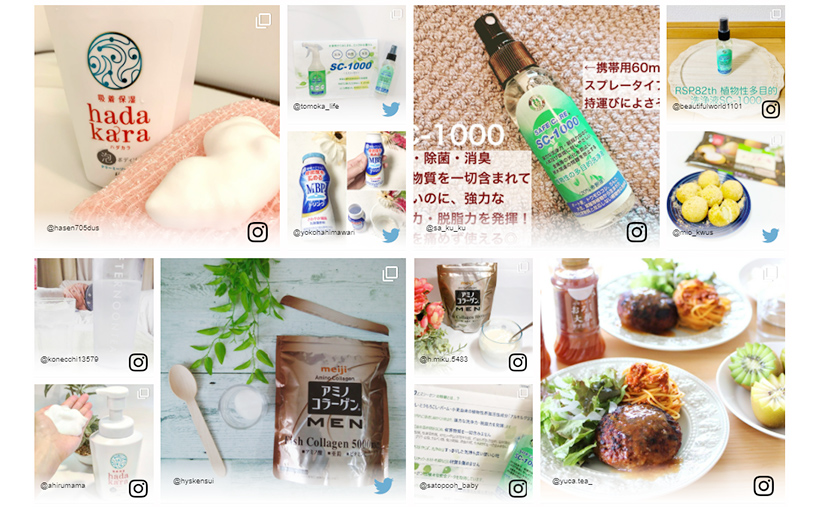 RSPでは、企業が本当に伝えたい商品情報や特徴、ブランドストーリーなどを、楽しいイベントとして参加者にプレゼンします。理解を深めた参加者は、企業の商品理解をしたうえでの発信者・ファンとして、生活者目線でのUGCを生成し、拡散していきます。また参加者特性としてフォロワーの多いSNSユーザーが多く、自身のフォロワー真摯に情報を届けようと、等身大の率直な意見の発信が多数見られます。