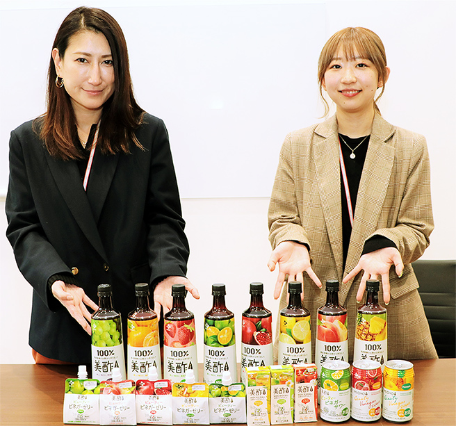 ■池⽥様:コロナ渦という要因もありますが、年々、⽣活者様の健康志向が⾼まっている傾向にあります。「ビネガードリンク」の飲料市場ももとは50代以上がメインだったものが、健康志向の向上という追い⾵があり、若返りを感じています。こういった中で、「美酢」のターゲットは2〜30代の美容に関⼼のある⼥性 となっており、商品特性もツンとした特有の⾹りが無かったり、フルーティーでまろやかな⾵味でどなたにも美味しく飲んでいただけるテイストです。今までの「ビネガードリンク」のイメージを変えていくような、また気分や好みに合わせてカジュアルに習慣化できる商品として今後もTPOを提案していきたいと思っております。