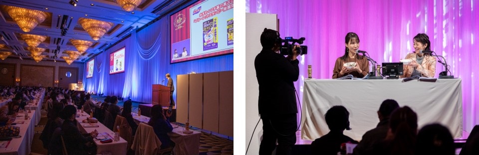 プレゼンテーションに加え、リアルイベントならではの試飲・試食を実施。メーカー各社のこだわりやおすすめポイントなど、プレゼンテーションを聞きながら配膳されるメニューを実際に味わうことで、商品理解を深めていただきました。